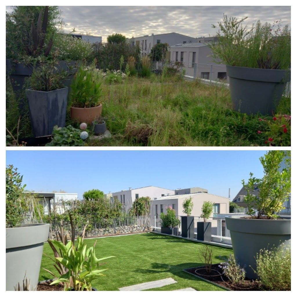 Évidemment, quand on a une terrasse, il est très difficile de faire pousser de l’herbe. Il existe des références de gazon synthétique de terrasse à l’aspect naturel assez bluffant.
